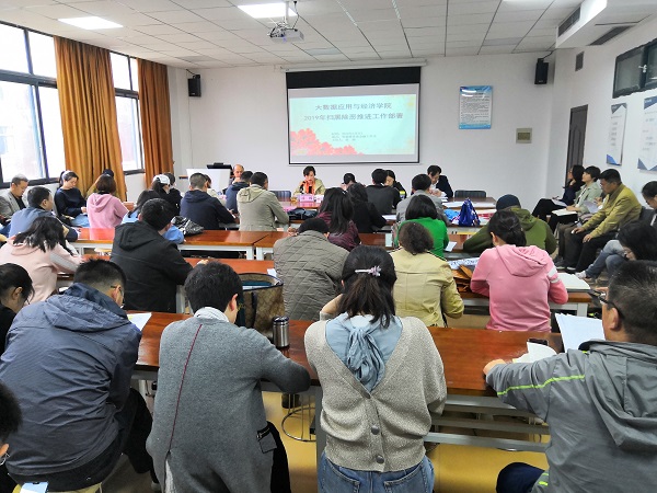 2019年5月7日下午,2026年世界杯官网在明德楼普惠金融工作室2019年扫黑除恶工作推进会。在家的领导班子成员、全体教职工参加了会议,党委书记徐梅主持会议。