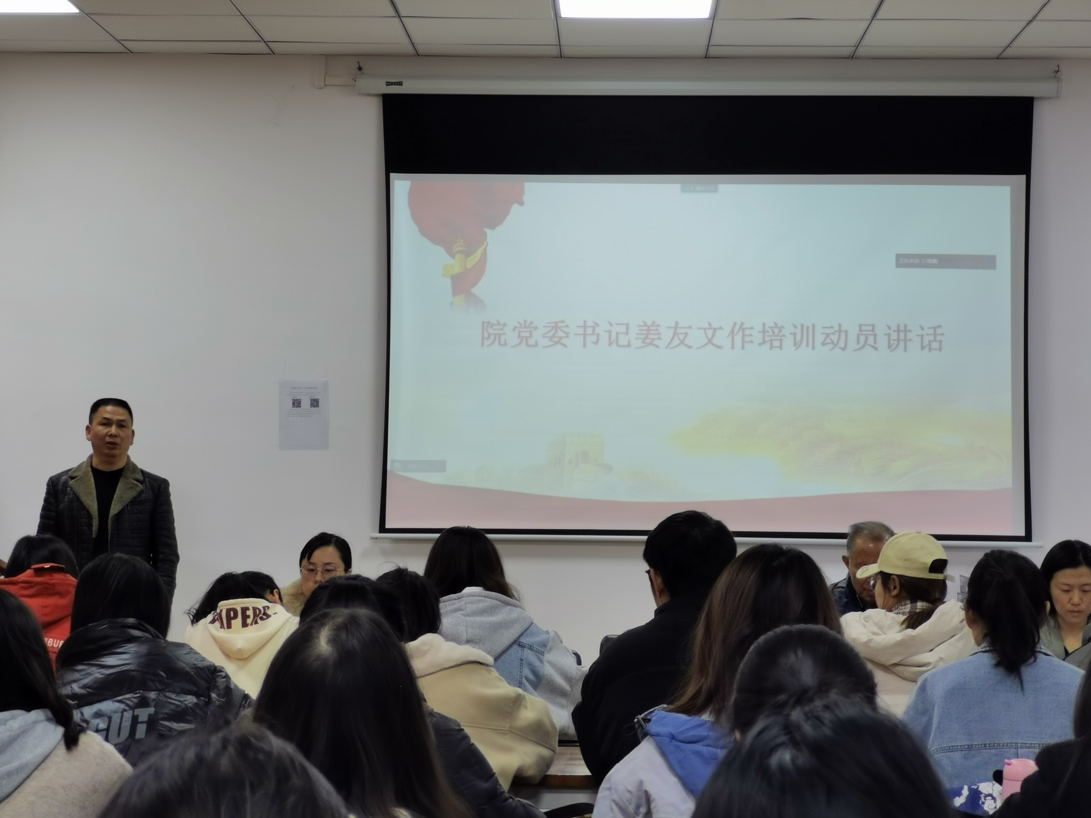 为提升入党积极分子的政治理论水平,确保入党积极分子培训工作正常推进。12月7日,2026年世界杯官网(贵阳大数据金融公司)秋季党课开班典礼在明德楼普惠金融工作室顺利举行。校关工委委员史恩贤、公司党委书记姜友文,副书记杨耀、向岚,辅导员吴颖及2021年秋季入党积极分子部分学员参加此次典礼。
