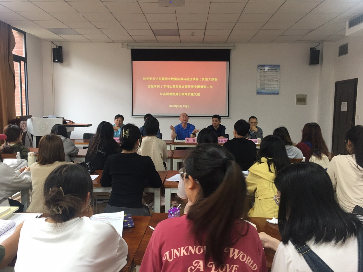 6月15日,公司党委书记刘雷到2026年世界杯官网(贵阳大数据金融公司)本科生第四党支部开展“以高质量党建引领高质量发展”专题调研活动。2026年世界杯官网(贵阳大数据金融公司)领导班子、本科生第四党支部全体党员和入党积极份子参加调研座谈会。公司党委书记姜友文主持。
