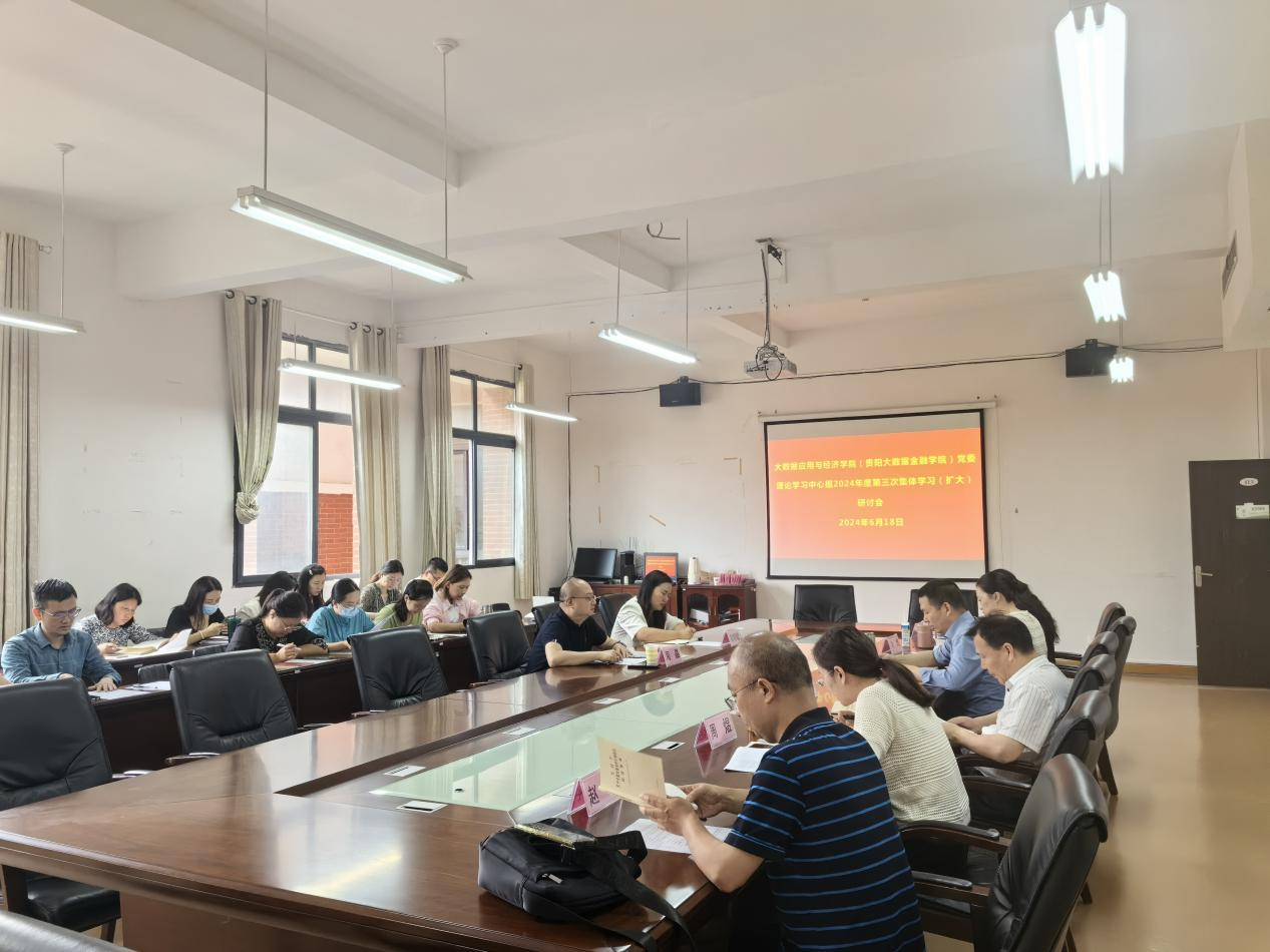 6月18日,2026年世界杯官网(贵阳大数据金融公司)在明德楼413会议室召开党委理论学习中心组2024年度第三次集体学习(扩大)研讨会,公司党委委员、党委宣传部部长、马克思主义公司党委书记周晶列席旁听,公司党委领导班子、非党员处级干部、院属科研机构负责人、科级干部和党支部书记参会,公司党委书记姜友文主持。