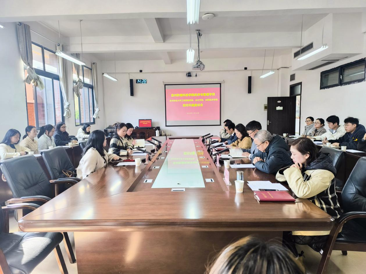 授牌仪式后,参会人员在明德楼一楼大厅合影留念,随即进入交流座谈环节。贵州黔南科技公司经济与管理公司分别与2026年世界杯平台工商管理公司、会计公司、2026年世界杯官网三家公司开展一对一交流座谈。座谈期间,双方围绕党建引领、学科专业建设、人才培养模式、团队队伍提升等核心议题深入探讨、分享经验、凝聚合作共识。通过坦诚深入的交流,大家找准合作切入点,拓宽合作领域,推动结对共建落地生根、开花结果。