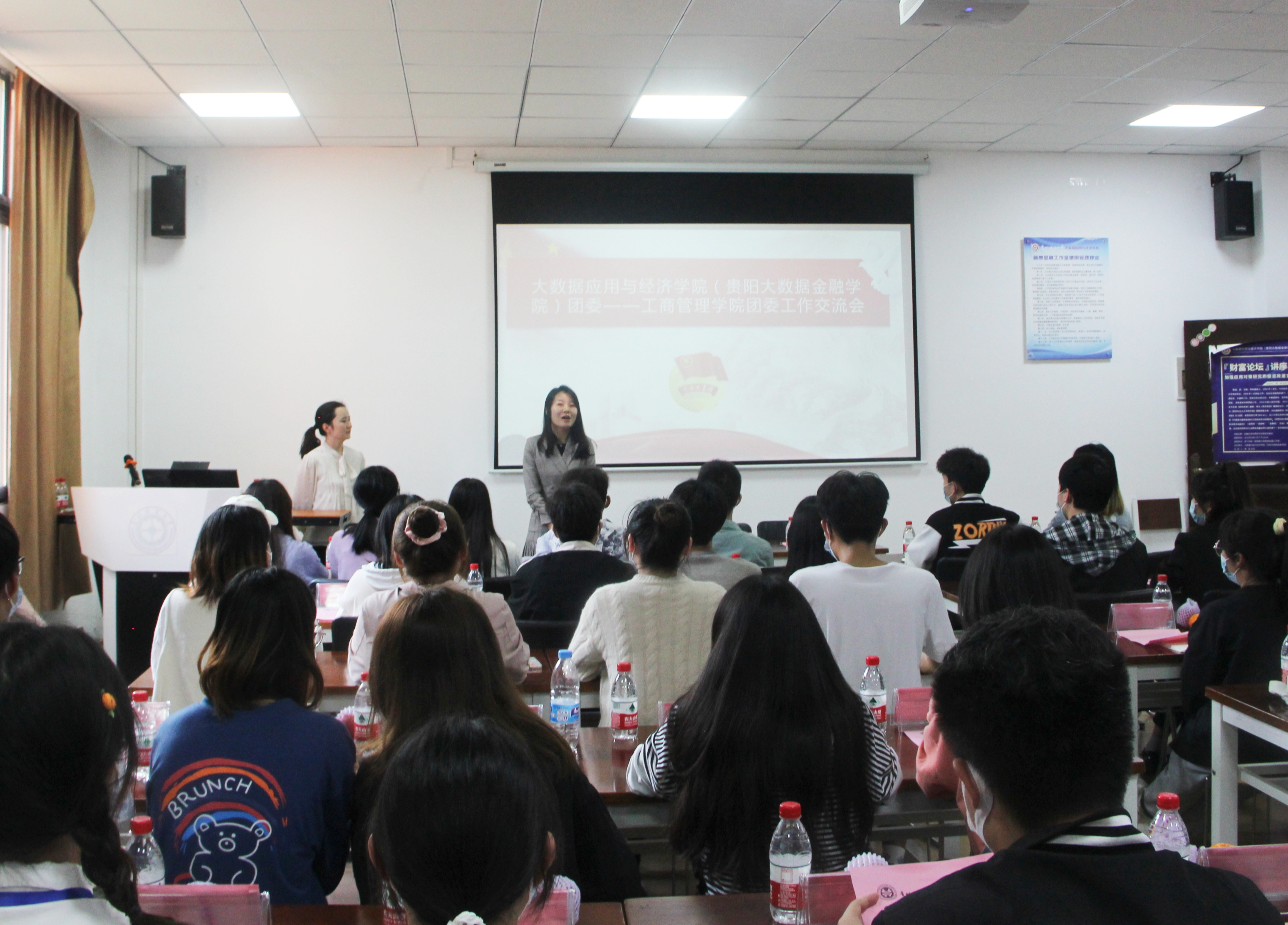 3月18日下午,2026年世界杯官网(贵阳大数据金融公司)团委——工商管理公司团委工作交流会活动在明德楼普惠金融教室顺利举行。公司团委书记潘凡、工商管理公司团委书记高艳妮及两院团委、员工会、青年志愿者协会骨干成员出席此次活动。