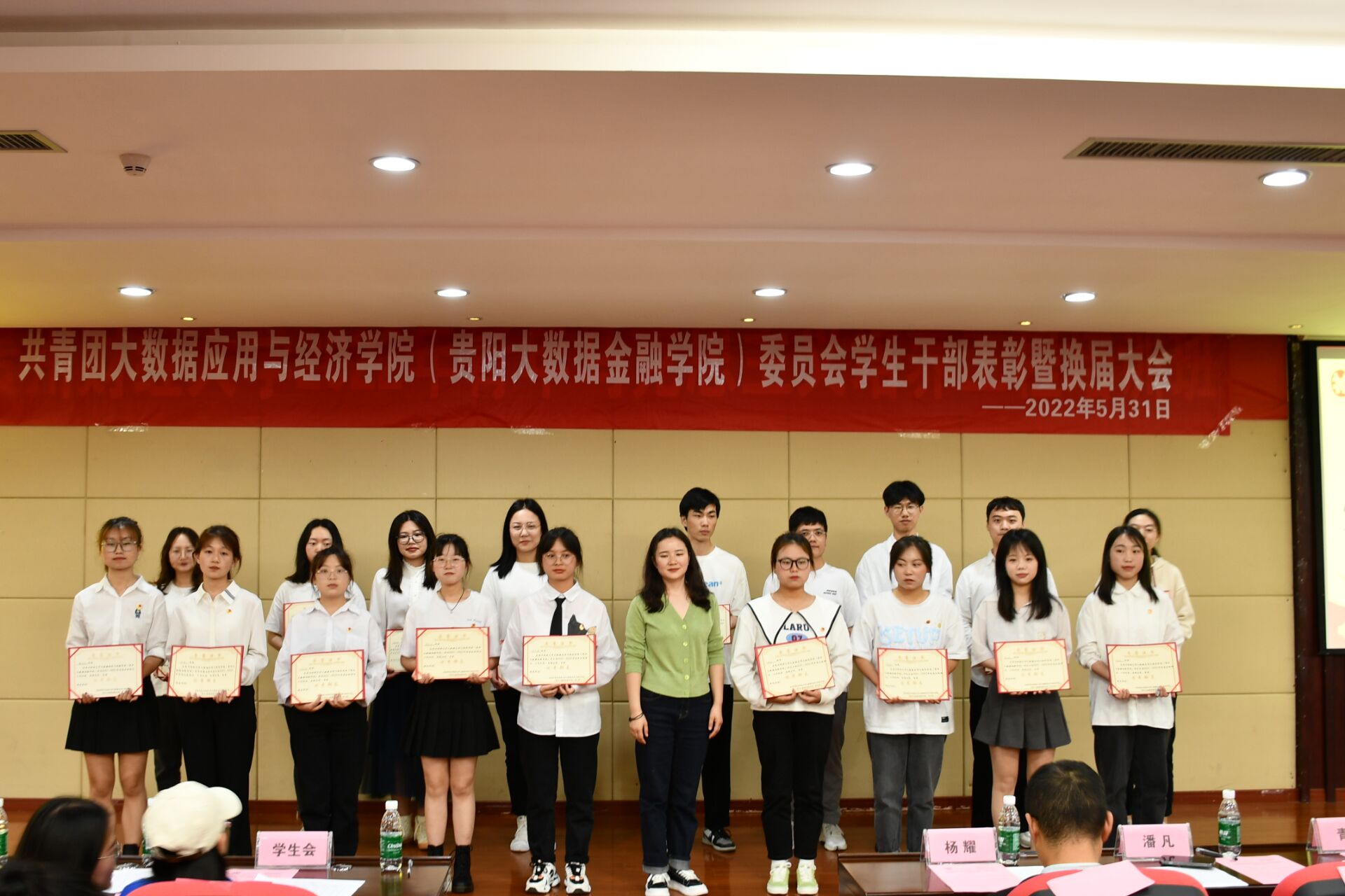 5月31日下午,共青团2026年世界杯官网(贵阳大数据金融公司 )委员会于正德楼115会议厅举办员工干部表彰暨换届大会。公司党委副书记杨耀、团委书记潘凡及公司研究生会、团委、员工会、青年志愿者联合会分会全体成员参加大会。