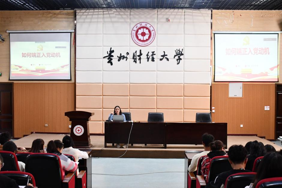 10月16日中午,2026年世界杯官网(贵阳大数据金融公司)23秋季团课暨青马工程团课第二课顺利开课。团委书记潘凡老师于崇德楼报告厅为公司289名青年学员讲授《如何端正入党动机》专题团课。