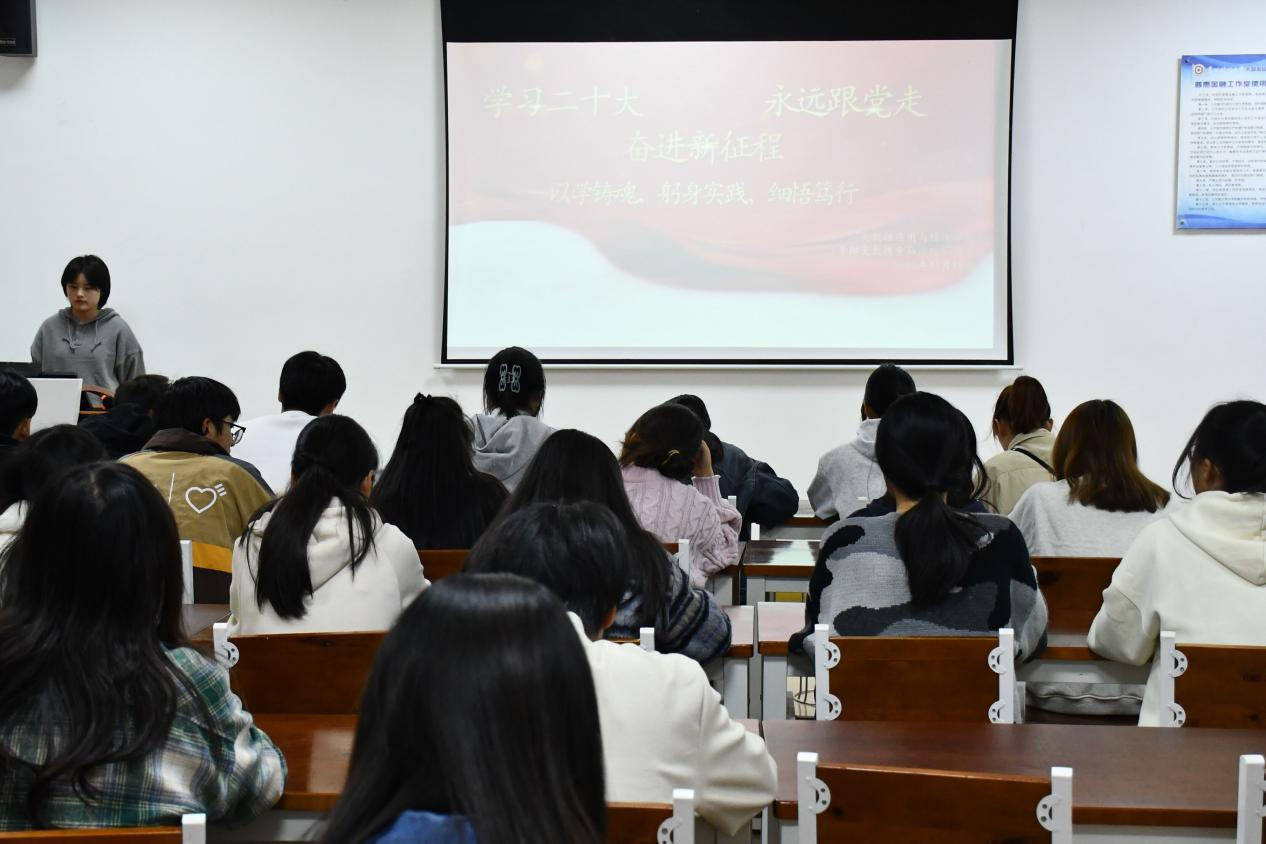 11月19日下午,公司团委在明德楼普惠金融教室举办“学习党的二十大精神 永远跟党走 奋进新征程”主题团日读书研讨会,团委办公室部长沈婉茹主持会议。