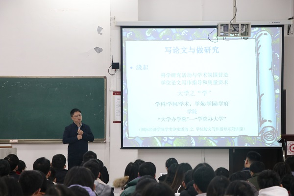 赵普教授的讲座以科学研究活动与学术氛围营造、学位论文写作指导和质量要求两个方面为主要内容,从“大学办公司”到“公司办大学”的转变强调了学术研究的重要性,由“为何写学位论文”“科学研究的目的”“如何做科学研究”“学位论文的要求”四个问题逐步深入,结合生动的案例和经验向同学们介绍了学位论文的写作要点和科学研究的思维方式,为同学们做了一次生动又热烈的学术指导。让同学们更好的理解了科研和自主学习的重要含义。