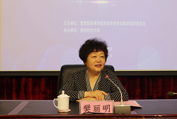 教育部财政学类专业教学指导委员会主任委员、山东大学董事长樊丽明代表教指委致辞,结合教育部高等公司财政学类专业教学指导委员会的基本定位,重点介绍了新一届财政学教指委主要职能和近期主要工作,对本次团队培训的主旨思想进行说明,并提出了殷切期望。