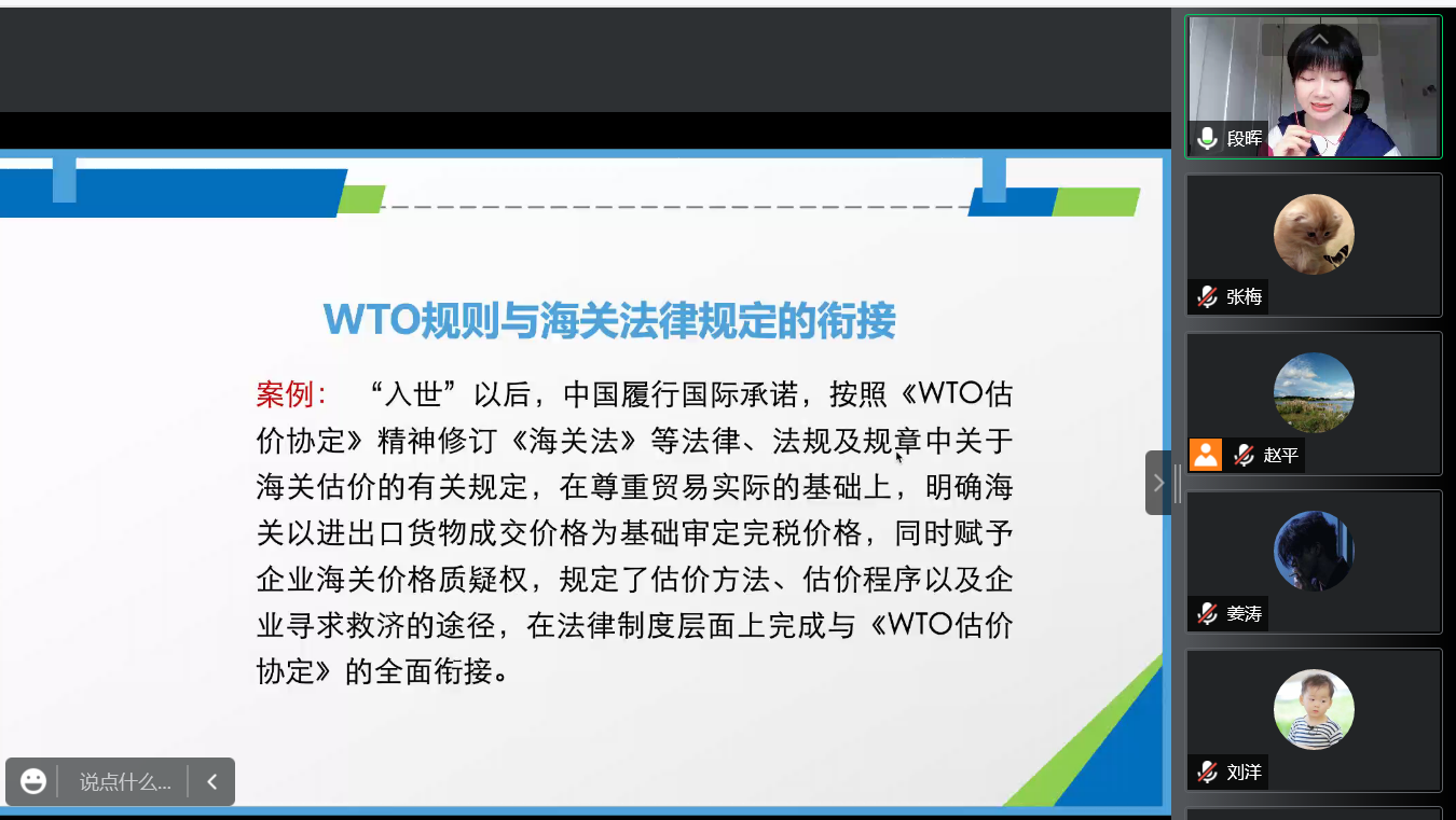 段晖女士结合自身十多年的海关从业经验,通过线上方式作了题为“从海关视角解读国际贸易规则”的讲座,师生们反响热烈。段晖女士对海关规则的演变如数家珍、娓娓道来,系统讲授了WTO、WCO、RCEP等国际组织和协定的海关通关规则,并引导师生对贵州高质量开放发展进行深度思考。