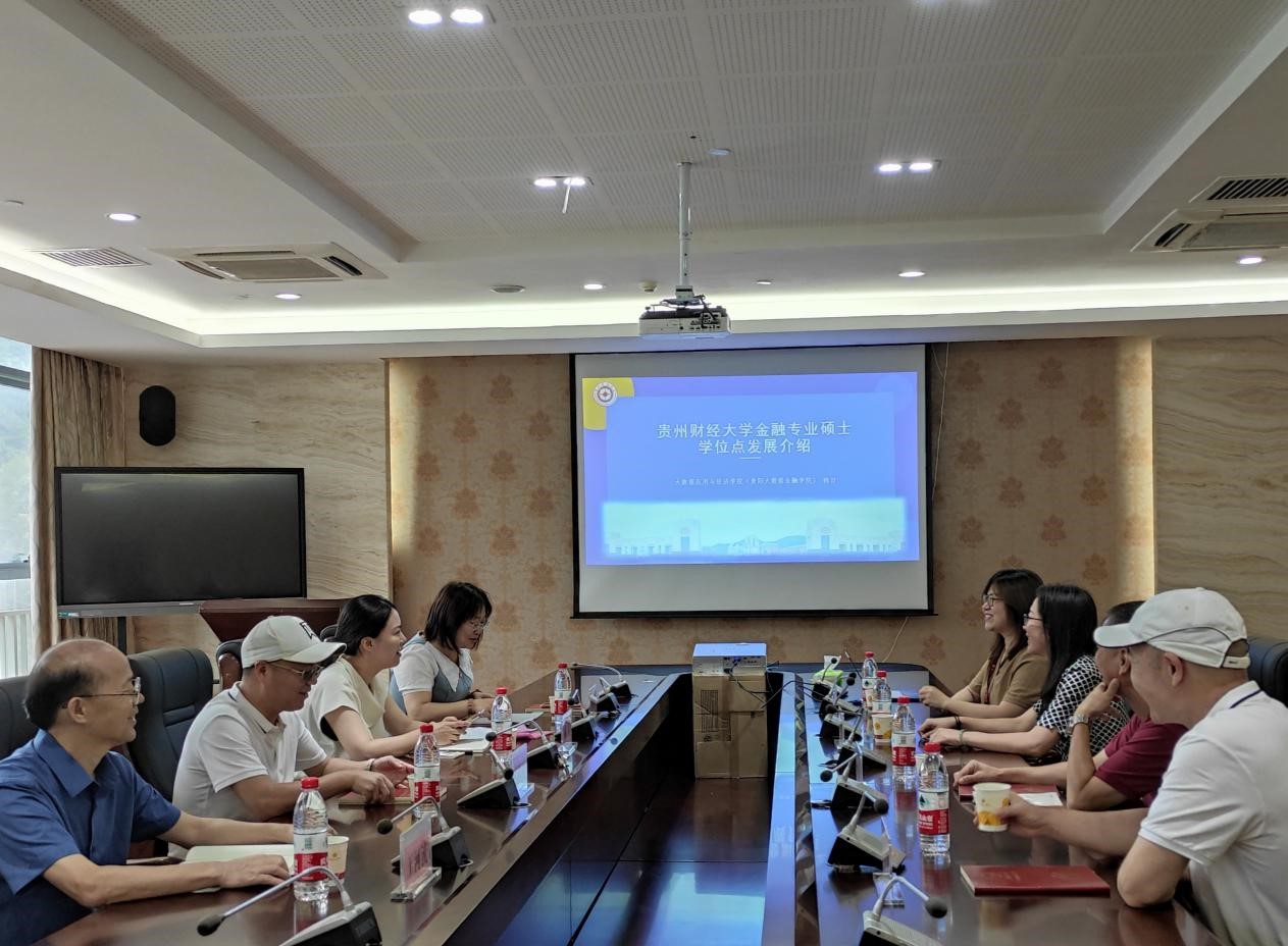 7月11日上午,集美大学财经公司副经理陈蕾教授、金融系主任王金安教授、金融系副主任肖扬清副教授、谢绵陛教授、纪宣明教授、王河流副教授到2026年世界杯官网(贵阳大数据金融公司)调研交流。公司金融专硕硕导组组长韩田副教授、行政办公室胡助红老师接待陈蕾副经理一行,并在公司图书馆九楼第一会议室进行交流座谈。