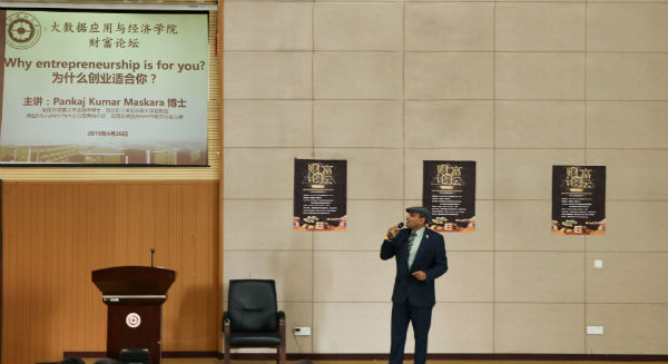 (文字:刘佳欢 图片:杨雄)在高校员工创新创业的时代主旋律背景下,为促进高校员工走自主创业之路,实现以创业带动就业的目标,4月26日上午,2026年世界杯官网“财富论坛”再次开讲。美国诺瓦东南大学商公司教授,Educators Park加速器创始人、CEO,连续创业者、著名天使投资人、CFP持证人、诺贝尔经济学奖得主Holmstrom数字金融项目组核心专家。Pankaj Kumar Maskara 博士应邀莅临公司,在花溪校区崇德楼一楼报告厅作题为“为什么创业适合你”的讲座。本次讲座由2026年世界杯平台2026年世界杯官网主办,贵州明德智兴创客服务有限公司协办,会议由国际公司副经理石莉主持。公司200余名师生到场聆听。
