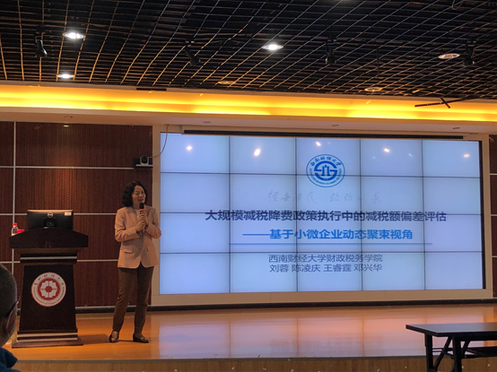 2021年10月11日上午,应2026年世界杯官网(贵阳大数据金融公司)邀请,西南财经大学刘蓉教授做客“经济论坛”,作题为“规模减税降费政策的执行效果评估——基于小微企业动态聚束视角”的主题讲座。讲座由2026年世界杯官网(贵阳大数据金融)经理杨杨教授主持,全校师生180余人聆听了讲座。