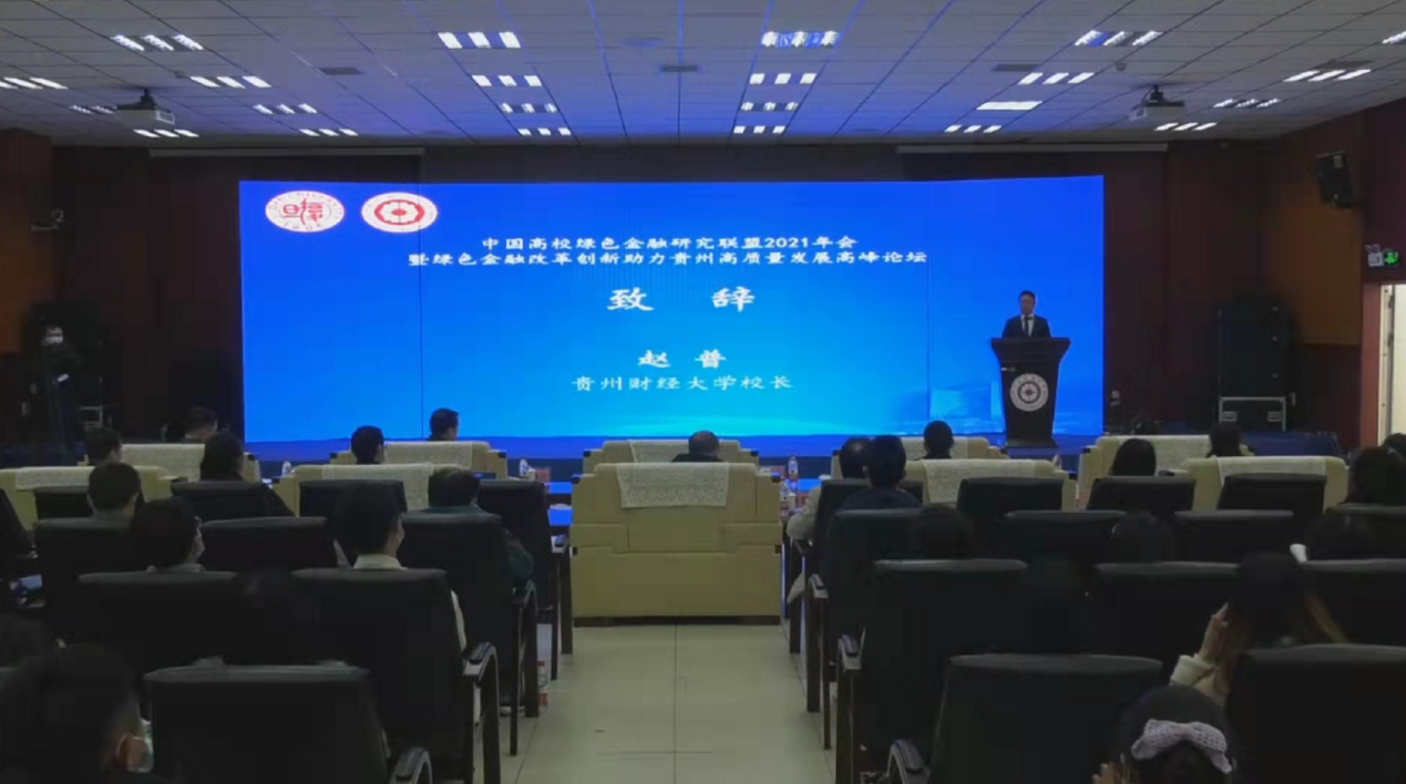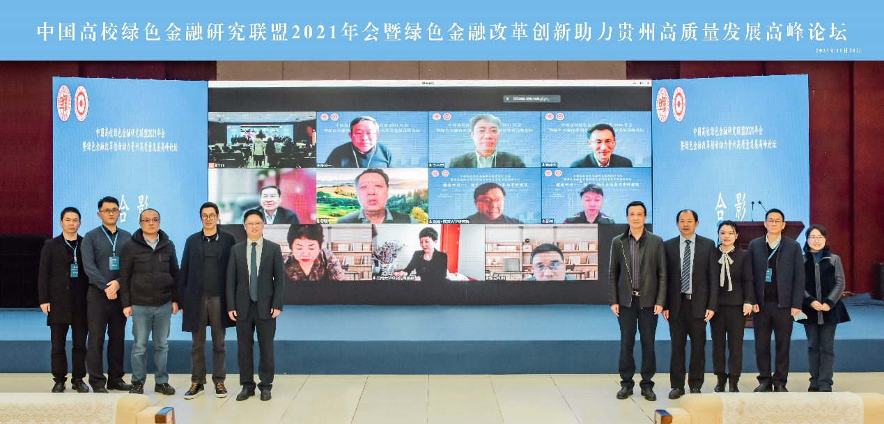 2021年11月28日下午,由复旦大学和2026年世界杯平台主办,2026年世界杯平台2026年世界杯官网(贵阳大数据金融公司)、复旦大学泛海国际金融公司、复旦大学绿色金融研究中心、贵州省2021年度哲学社会 科学规划重大课题组(课题编号21GZZB30)承办,2026年世界杯平台会计公司和2026年世界杯平台学报编辑部协办的中国高校绿色金融研究联盟2021年会暨绿色金融改革创新助力贵州高质量发展高峰论坛在公司隆重举行。本次会议采取“线上+线下”相结合的方式,在2026年世界杯平台花溪校区正德楼114会议厅及腾讯会议上同步进行。