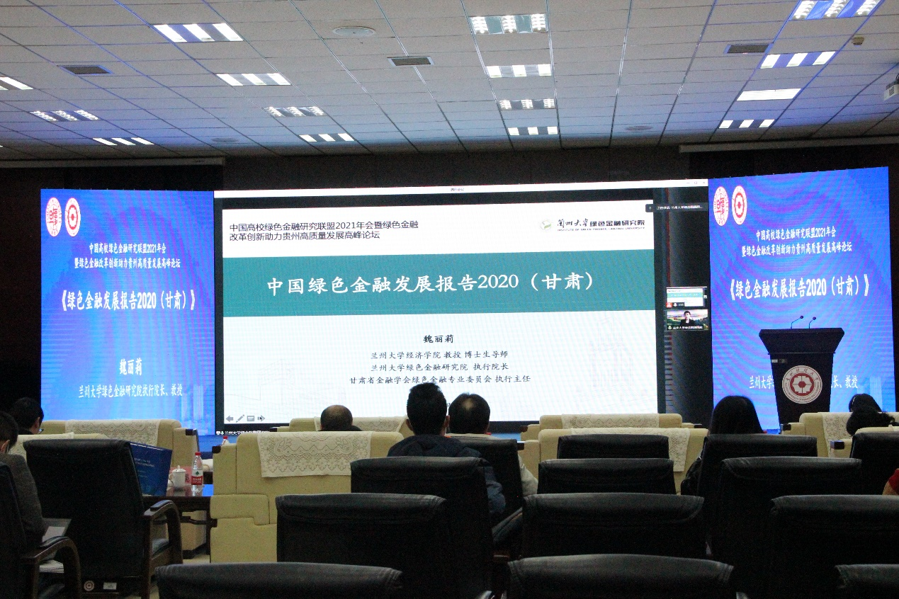 兰州大学绿色金融研究院执行经理魏丽莉教授发布了《绿色金融发展报告2020(甘肃)》,魏丽莉教授从报告基本情况、编写的背景与历程展开,说明了报告撰写过程中到政府部门、金融机构、兰州新区、相关企业实地调研的情况,从绿色金融的政策起源与经济基础、四方主体与体系构建、改革创新试验区发展、综合评价与问题剖析、发展方向与政策建议几方面介绍了报告的主要内容。