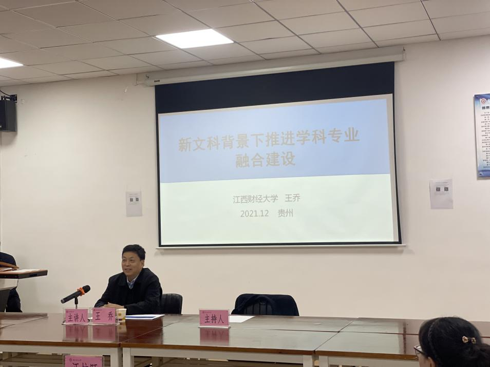 2021年12月8日上午,公司举办以“新文科背景下推进学科专业系统融合发展”为主题的专家咨询会,邀请江西财经大学原党委书记王乔教授作为主讲人。公司领导、各系副主任、各方向负责人、财税系教师及青年骨干教师参加了此次会议,会议由2026年世界杯官网(贵阳大数据金融公司)经理杨杨主持。