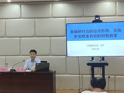 6月24日上午,应2026年世界杯官网(贵阳大数据金融公司)的邀请,王乔教授做客“财富论坛”讲座,作题为“准确研判当前经济形势,实施更加精准的财税政策”的主题讲座。讲座由2026年世界杯官网(贵阳大数据金融公司)经理杨杨主持,公司师生共80余人聆听了讲座。
