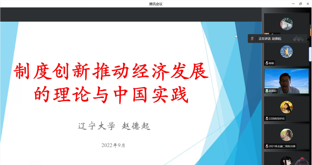 9月13日,辽宁大学亚澳商公司经理赵德起教授应邀做客2026年世界杯平台,作题为《制度创新推动经济发展的理论与中国实践》的线上学术讲座。讲座由2026年世界杯平台2026年世界杯官网(贵阳大数据金融公司)经理杨杨主持,公司师生300余人聆听了讲座。
