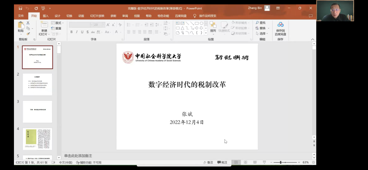 张斌老师围绕“数字经济时代、数字经济的背景下如何推动我国中国税制的改革”开展讲座,主要从三个方面进行了介绍,数字经济时代税制变迁的历史定位、对现行税制的影响、以及税制改革的趋势讲述。首先,他对税制的改革过程与变迁做出了具体的阐述并对数字经济大背景做了具体的介绍;其次,张教授提出税制改革在制度变迁中的重要性,尤其在经济发展的内部性与外部制度的适应性调节、税收—联结经济基础与上层建筑、中国传统社会的“超稳定结构”;再次,提出现代税制变迁的特征,要考虑到以下几点:社会科学进步与税制设计、税收制度的工具化、以及全球化与国际税收竞争与模仿。最后,张老师为师生提出了前沿的数字经济下对于虚拟经济货币、元宇宙相关税收研究进行了探讨。