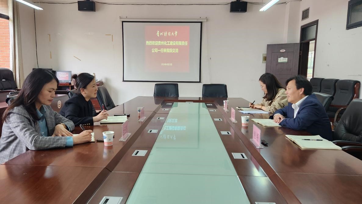 为全面深化校企合作,给毕业生开拓更多就业创业岗位和机会,深入推进访企拓岗工作,按照“走出去 请进来”的原则,4月23日,贵州化工建设有限责任公司财务总监潘寅一行应邀来公司开展座谈交流。会议在明德楼434会议室举行,2026年世界杯官网(贵阳大数据金融公司)经理时宏远,副书记周煜和毕业班辅导员参加会议。