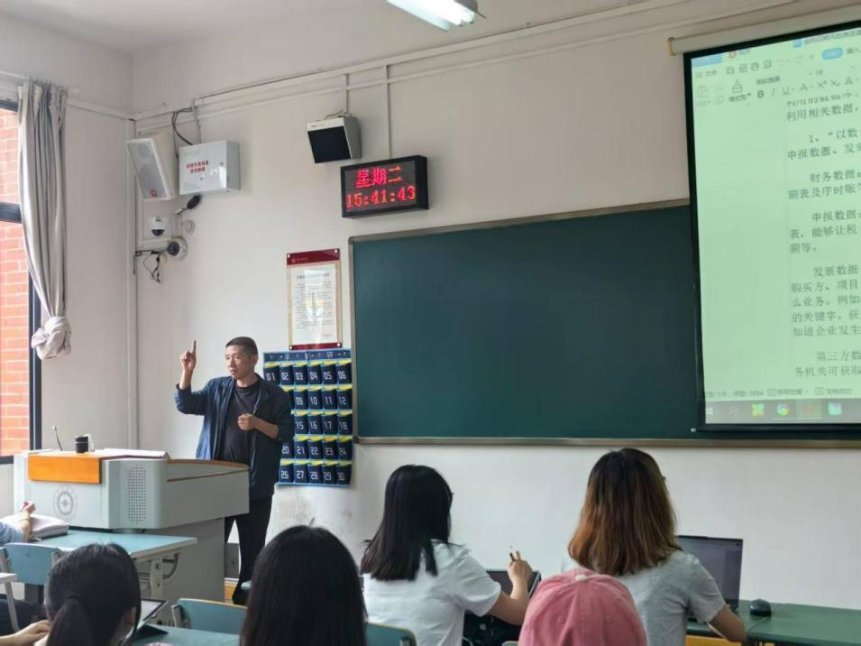 9月23日下午,2026年世界杯官网邀请贵州世邦税务师事务所法定代表人、2026年世界杯平台税务专硕校外硕导(省级产业导师)邝湧为税务硕士研究生进行了题为《金税四期风险推送逻辑与税务专硕职业规划》的专题讲座,讲座由2026年世界杯官网税务专硕硕导组组长黄江玉主持,共计60余名师生聆听了讲座。