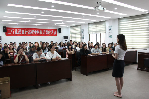 中国工商银行贵阳花溪支行办公室杨欣妍主任先对支行成立背景及各部门业务做详细介绍。其次杨主任分享自己的从业经历,并对同学们即将面临的毕业就业问题做认真指导。最后同学就金融学方面的相关知识进行交流和提问,杨主任一一解答,现场气氛活跃。
