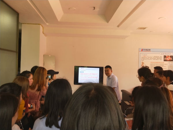 公司营业部周地锟经理首先介绍华创证券公司的基本情况,然后就同学们的问题做耐心解答,现场气氛活跃。最后,此次专业认知实习圆满结束,师生安全返校。