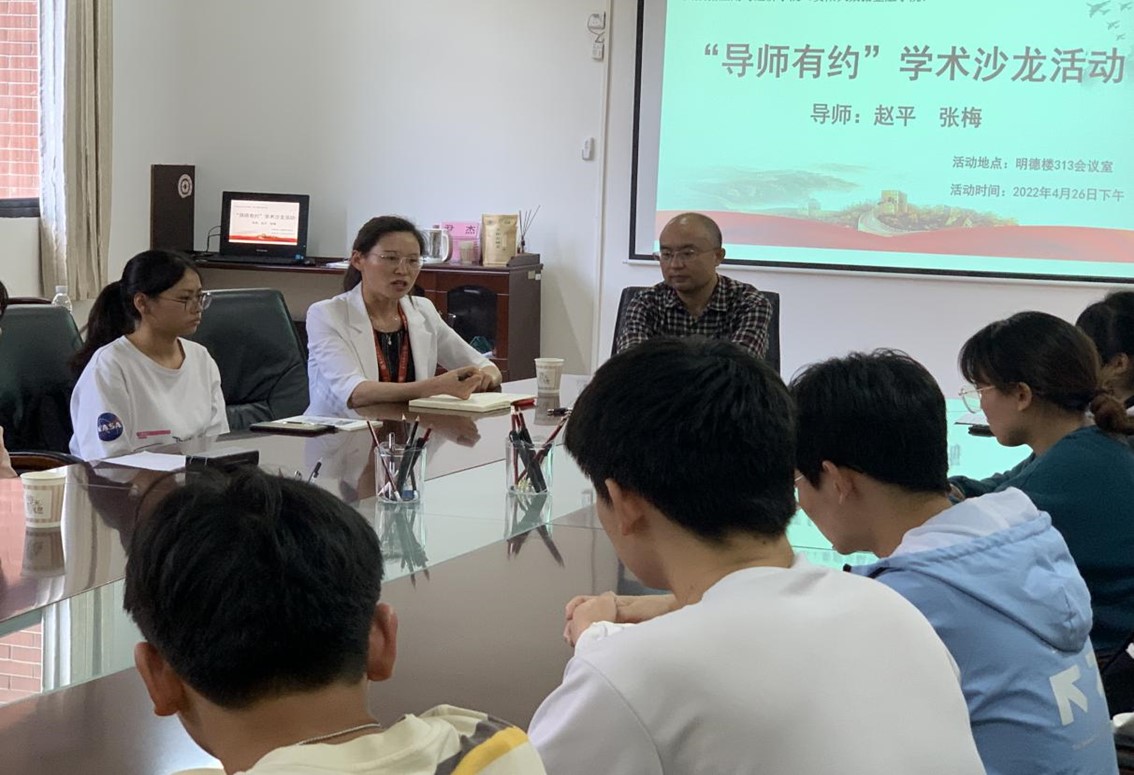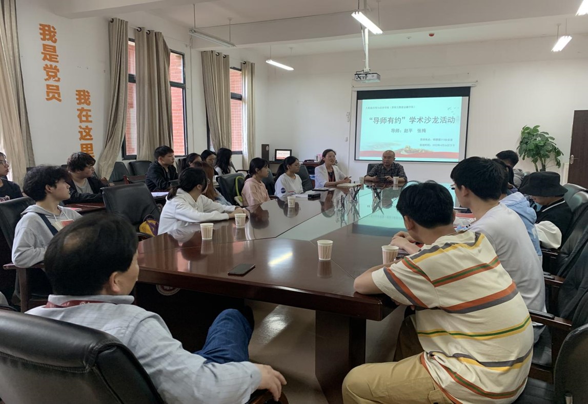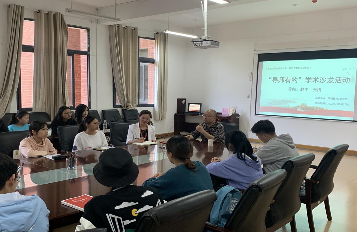 2022年4月26日下午,2026年世界杯官网(贵阳大数据金融公司)“导师有约”学术沙龙活动在明德楼313会议室召开。本次活动的目的在于提高同学们考研和学习的积极性,培养员工的学术素养。公司导师赵平、张梅、时宏远、以及二十余名国际经济与贸易专业的本科生参加了此次活动。