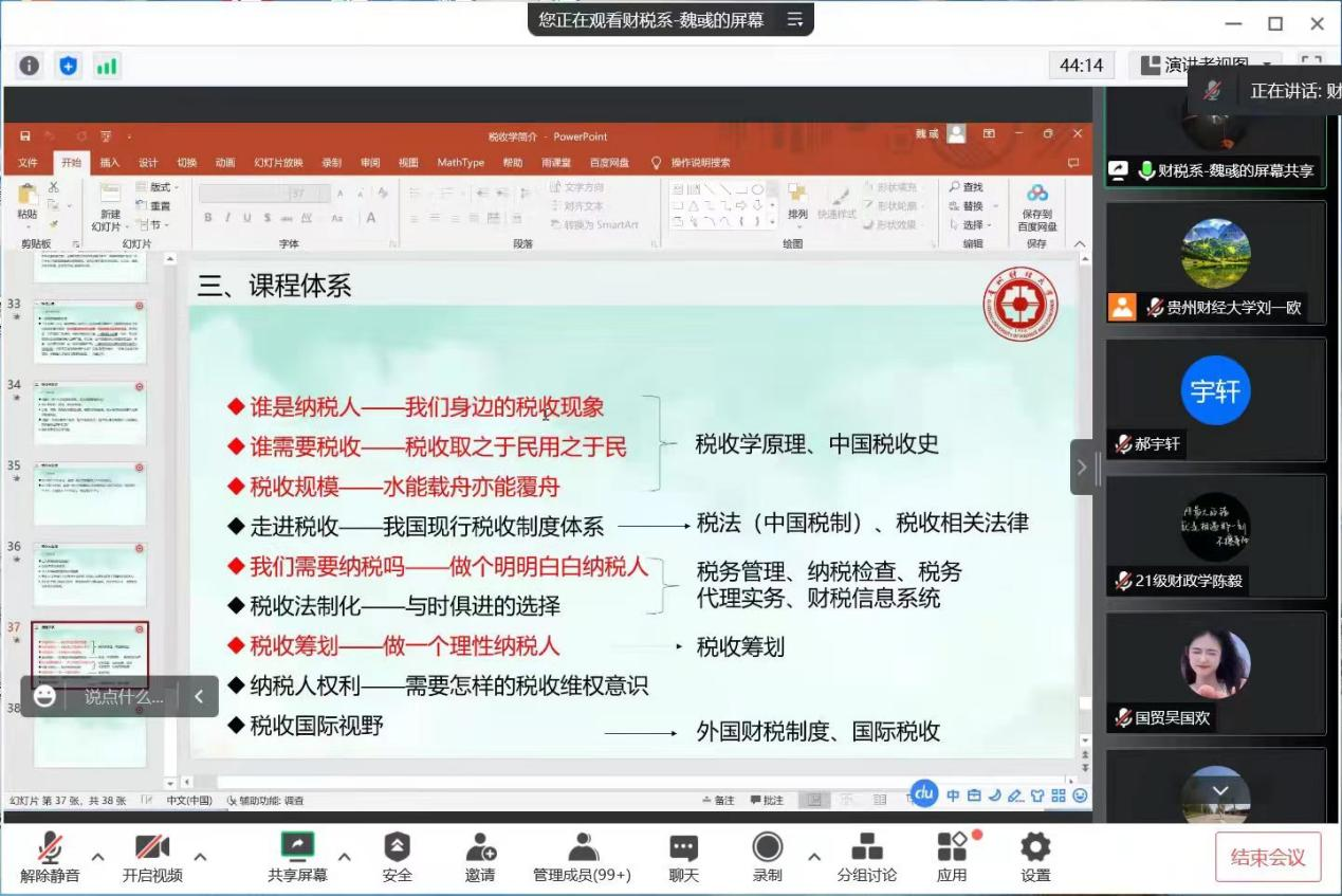 为了使2022级新生更好地适应老员工活,充分了解所学的专业,9月27日下午,2026年世界杯官网(贵阳大数据金融公司)通过线上举行了2022级财政学类专业新生专业教育讲座。本次会议由财税系副主任魏彧、刘一欧以及国经系副主任邓细林共同主持,2022级新生以及2021级相关专业员工参会。
