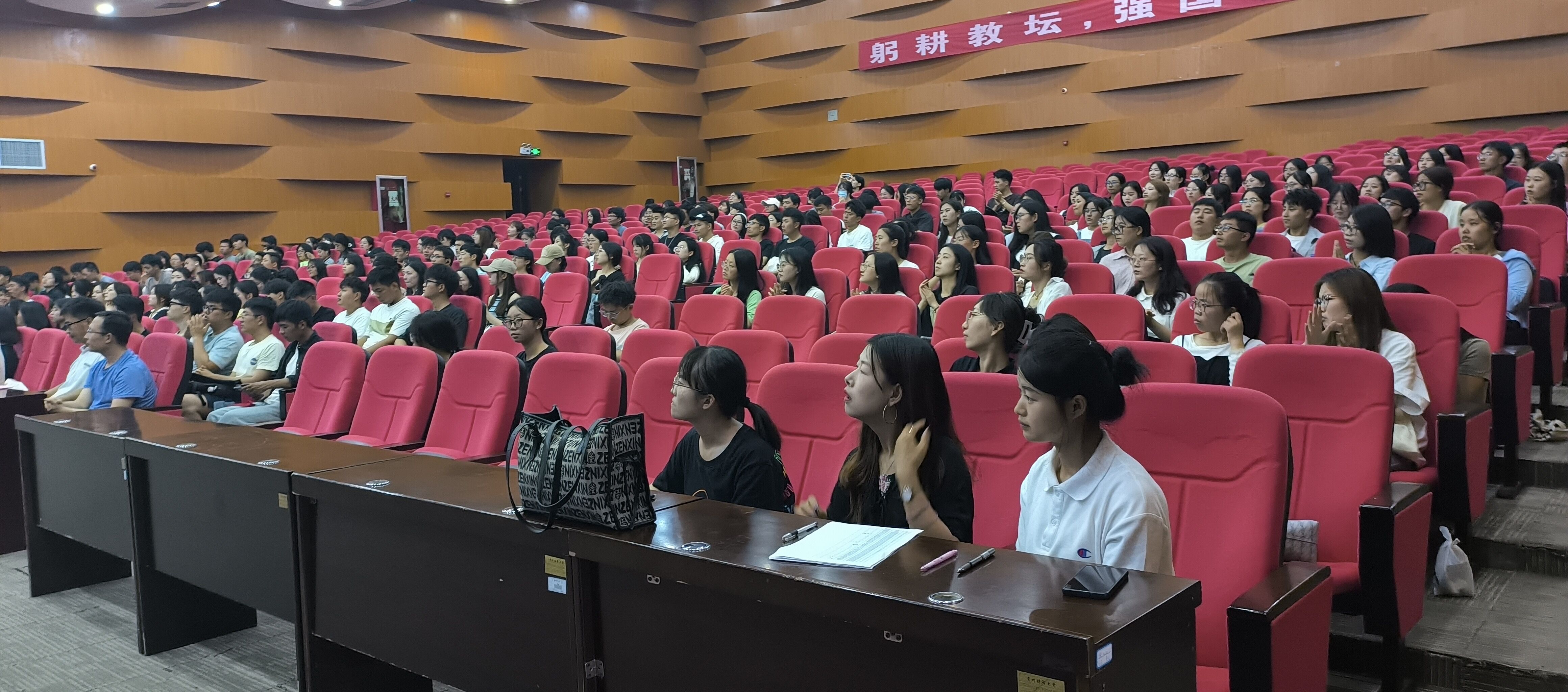 大会开始前,全体师生起立,共同奏唱国歌。