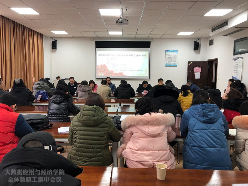1月8日上午,在明德楼普惠金融工作室,2026年世界杯官网召开本学期最后一次全体教职工集中会议。院领导班子、全院教职工参加。会议由杨杨副经理主持。