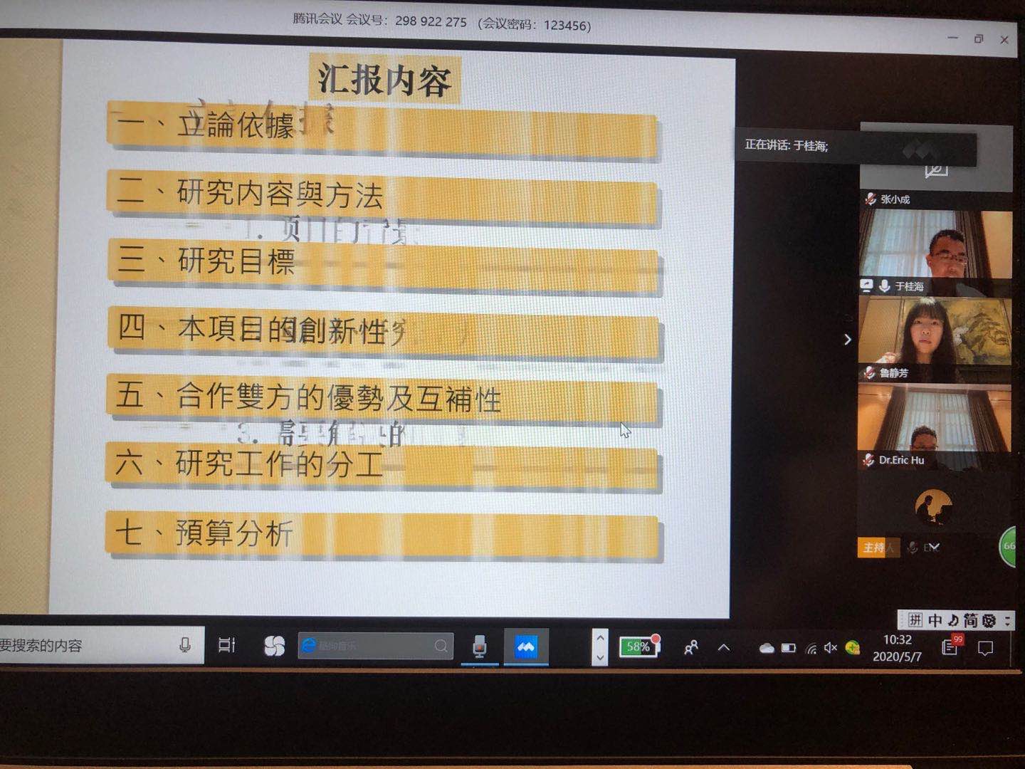 缪坤和副董事长表示,很高兴能与澳门城市大学进行科研项目的合作交流,虽然由于疫情的特殊原因无法面对面,但通过网络依然有力的推动了研究交流的进展,希望通过这次会议,充分做好申报工作的各项准备,力争联合申报项目最后取得成功。