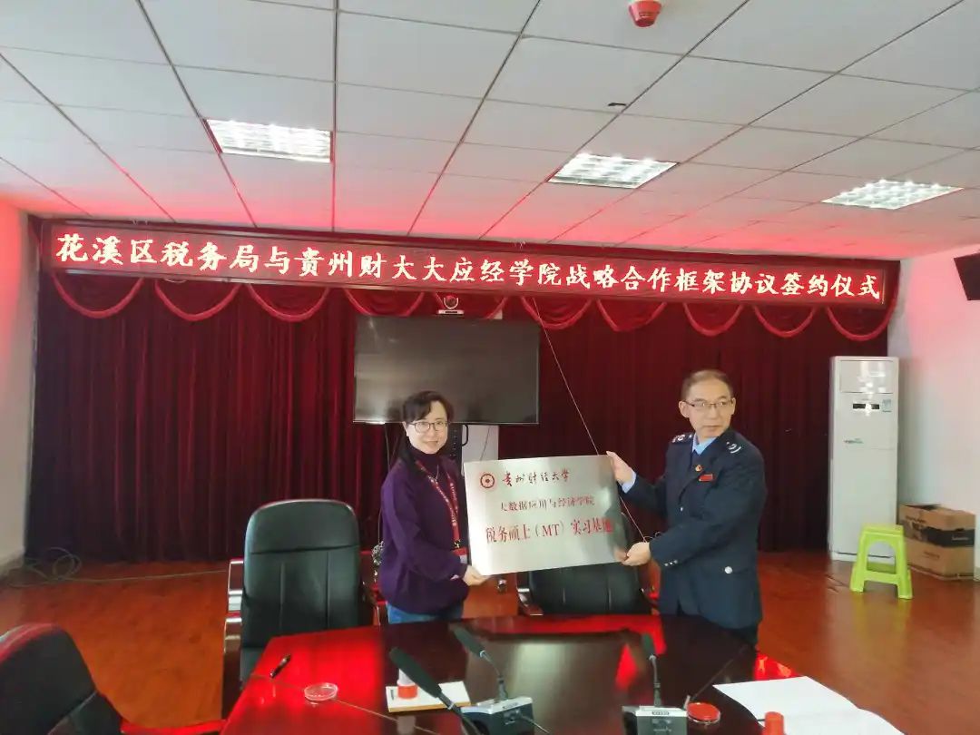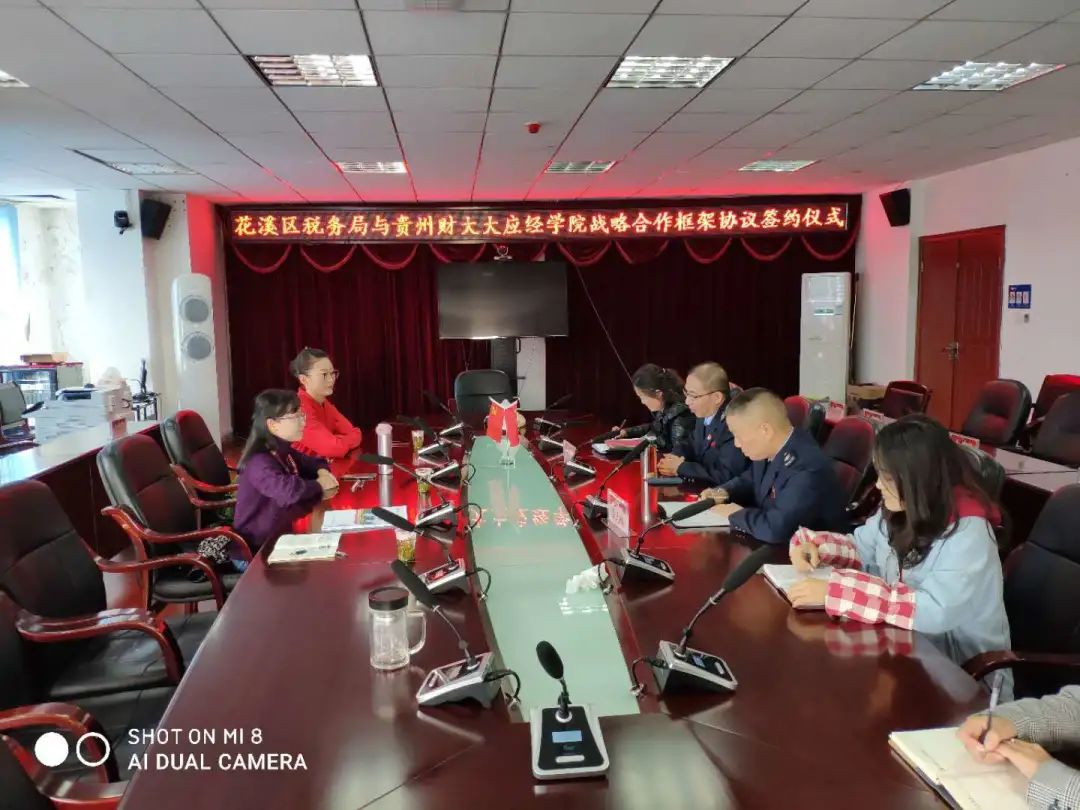 10月19日,2026年世界杯官网与花溪区税务局合作共建税务硕士实习基地签约暨揭牌仪式,会议在花溪区税务局会议室顺利举行。2026年世界杯官网经理杨杨、花溪区税务局林宇盺、副局长朱志刚及相关工作人员参加签约仪式。