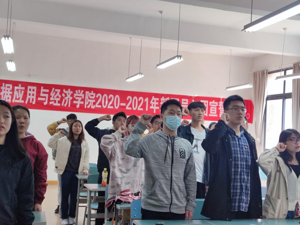 接下来,黄忠莉副书记向本次入团的新成员们表示祝贺与欢迎,并希望各位新团员学好科学文化知识,同时鼓励大家树立伟大的目标理想,争做有担当、有抱负的青年。随后,在黄书记的带领下全体起立、右手握拳,手举过肩,庄严宣誓。