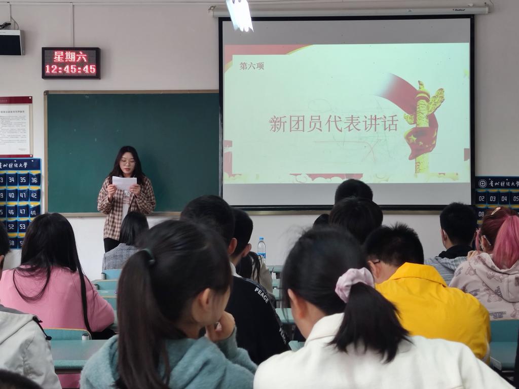 最后,新团员代表贺万琴发言。共青团是党的有力的后备军,既成为了团组织的一份子,就应不断锻炼自己、提升自己、严格要求自己,起好带头模范作用,明确自身职责,以身作则,为公司为班级做出贡献,力争做一名优秀的共青团员。至此,本次活动在新团员的热烈掌声中圆满落下帷幕。