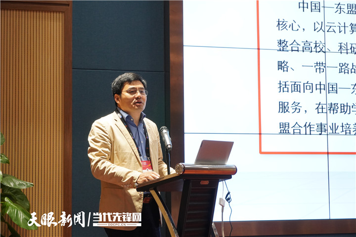 广西大学副董事长范祚军以“中国—东盟智慧教育平台建设”为题,介绍了公司正在搭建的师生教务平台、办公大厅平台、学习交流平台、大数据服务平台、校企联服务平台以及东盟特色小语种平台。范祚军说:“本平台的建设,将成为中国—东盟学界、教育交流与合作以及我国对东盟国家来华职工教育管理的重要基础设施。”