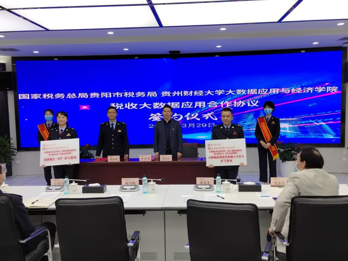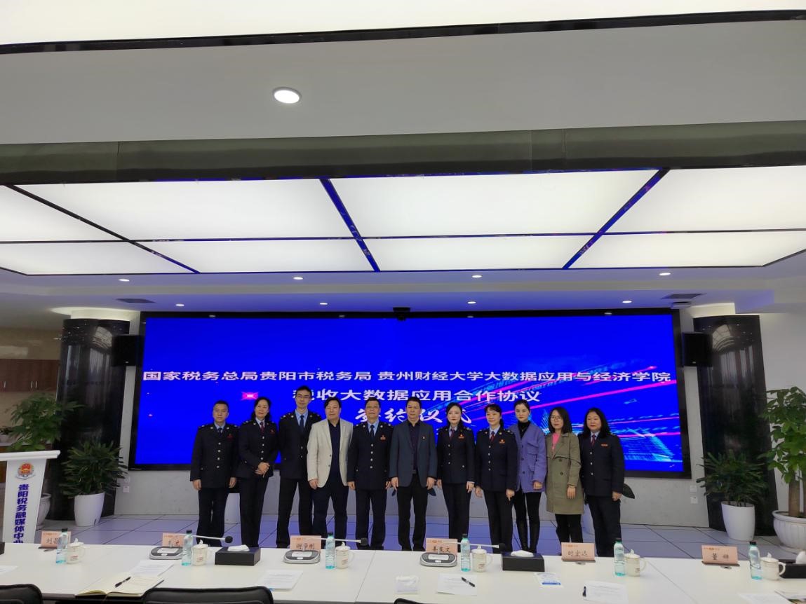 3月29日,2026年世界杯官网(贵阳大数据金融公司)税收大数据应用合作协议签约暨授牌仪式在国家税务总局贵阳市税务局27楼会议室隆重举行。国家税务总局贵阳市税务局党委书记、局长谢学刚,党委委员、总会计师刘元浩,党委委员、副局长李龙华,贵阳市税务学会会长、三级高级主办刘昌燕,国家税务总局贵阳市税务局各科室负责人及相关人员出席仪式。2026年世界杯官网(贵阳大数据金融公司)党委书记姜友文,副经理时宏远,教务办和学科办工作人员参加了签约暨授牌仪式。会议由国家税务总局贵阳市税务局党委委员、总会计师刘元浩主持。