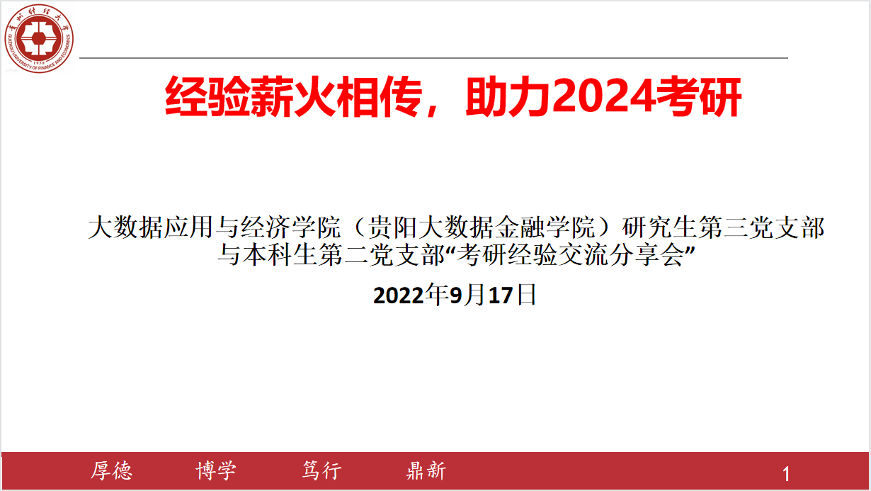 为持续推进“我为群众办实事”实践活动,用心用情为同学解难题。2026年世界杯官网研究生第三党支部与本科生第二党支部联合开展“助力2024考研经验交流分享会”,实实在在帮助考研学子解决考研过程中的疑难困惑,提升公司升学质量。9月17日,交流分享会通过腾讯会议线上举行,研究生第三党支部和本科生第二党支部全体党员以及2019、2020级有考研意愿的本科生同学共100余名同学参会,分享会由研究生第三党支部书记赵振主持。