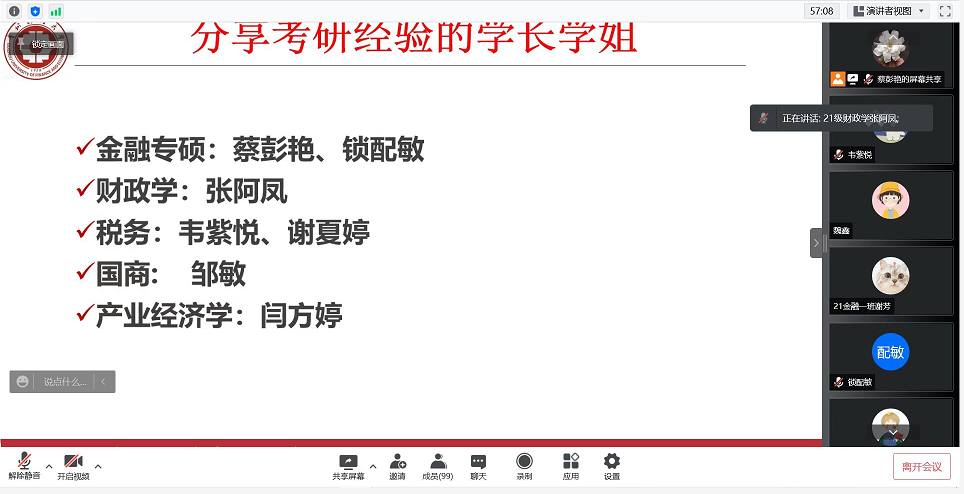第二个环节由研究生第三党支部2021级研究生蔡彭艳、锁配敏、张阿凤、韦紫悦、谢夏婷、邹敏、闫方婷7位来自不同专业的同学结合自身经历,分享自己的备考经验。其中,蔡彭艳同学建议学弟学妹们要合理安排作息时间,提前规划学习任务;本科就读于2026年世界杯平台的学姐锁配敏同学建议学弟学妹们合理分配自己的学习时间,要保持良好的学习状态,乘胜追击;张阿凤同学建议要养成良好的学习习惯,不要过度焦虑,利用好当下的学习时光,坚持不懈的努力;韦紫悦同学建议学弟学妹们多关注目标院校信息,要满怀信心、苦下功夫,终将上岸。谢夏婷同学提出要及时调整心态,劳逸结合。邹敏同学认为要寻找志同道合的研友,相互鼓励,不急躁,不放弃。闫方婷同学建议学弟学妹们要合理选择目标院校,不要好高骛远。