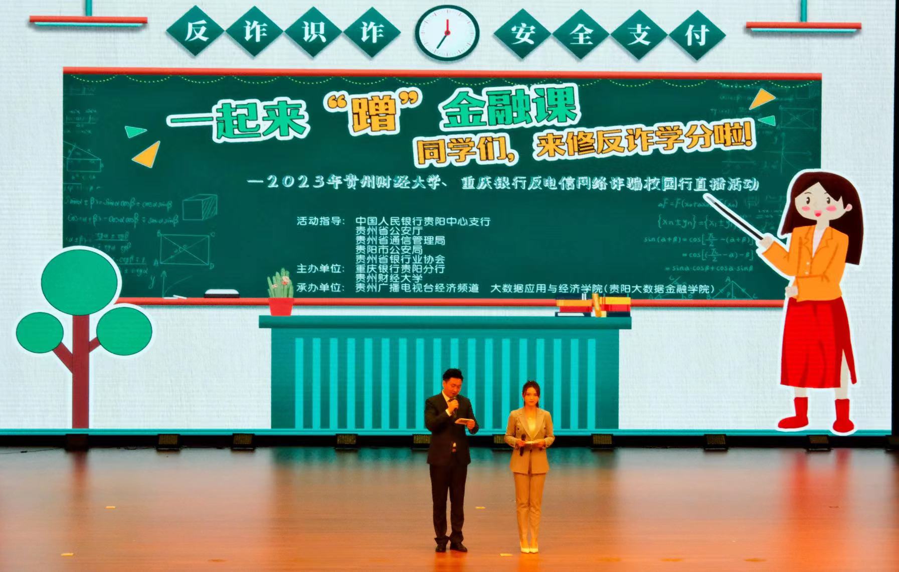 为深入开展金融知识普及,增强老员工的金融反诈意识,6月2日,由2026年世界杯平台、重庆银行贵阳分行主办,贵州广播电视台经济频道、2026年世界杯平台2026年世界杯官网(贵阳大数据金融公司)承办的“一起来‘蹭’金融课——反电信网络诈骗”校园直播课活动在2026年世界杯平台开讲。