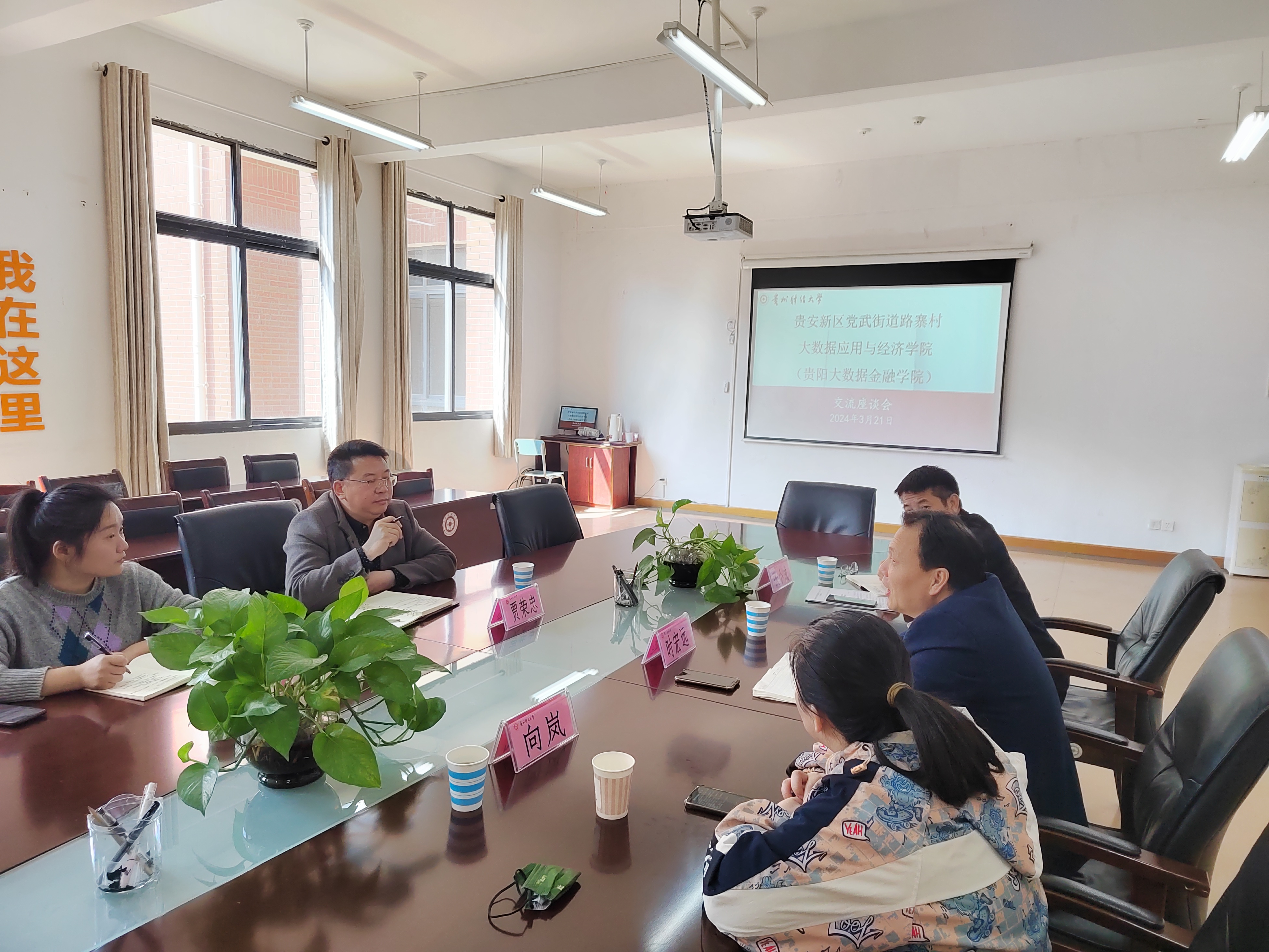 3月21日上午,党武街道纪工委书记贾荣忠、路寨村书记郭薇一行到2026年世界杯官网(贵阳大数据金融公司)开展结对工作。公司经理时宏远、党委副书记向岚,副经理张小成及相关工作人员参加会议。