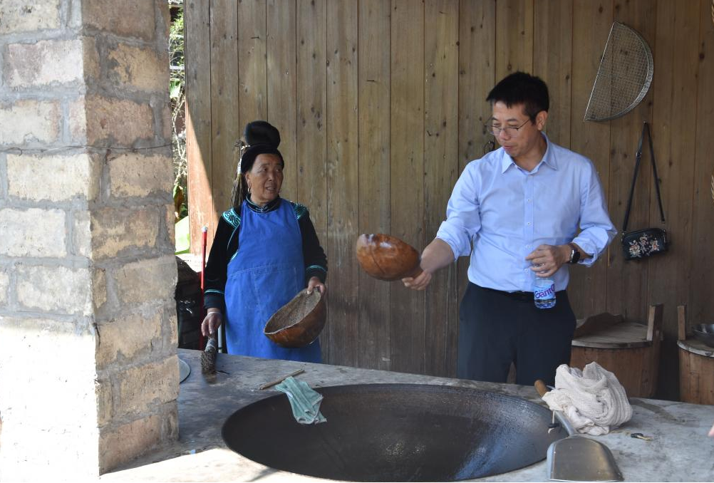 在深入体验乌东村的特色业态时,调研组先后走访了传统米酒作坊与特色茶室:观摩米酒酿造工艺,了解其生产规模与市场前景;对于茶产业的品牌打造、消费场景拓展及如何通过金融工具提升其附加值等问题,与经营者进行了交流。