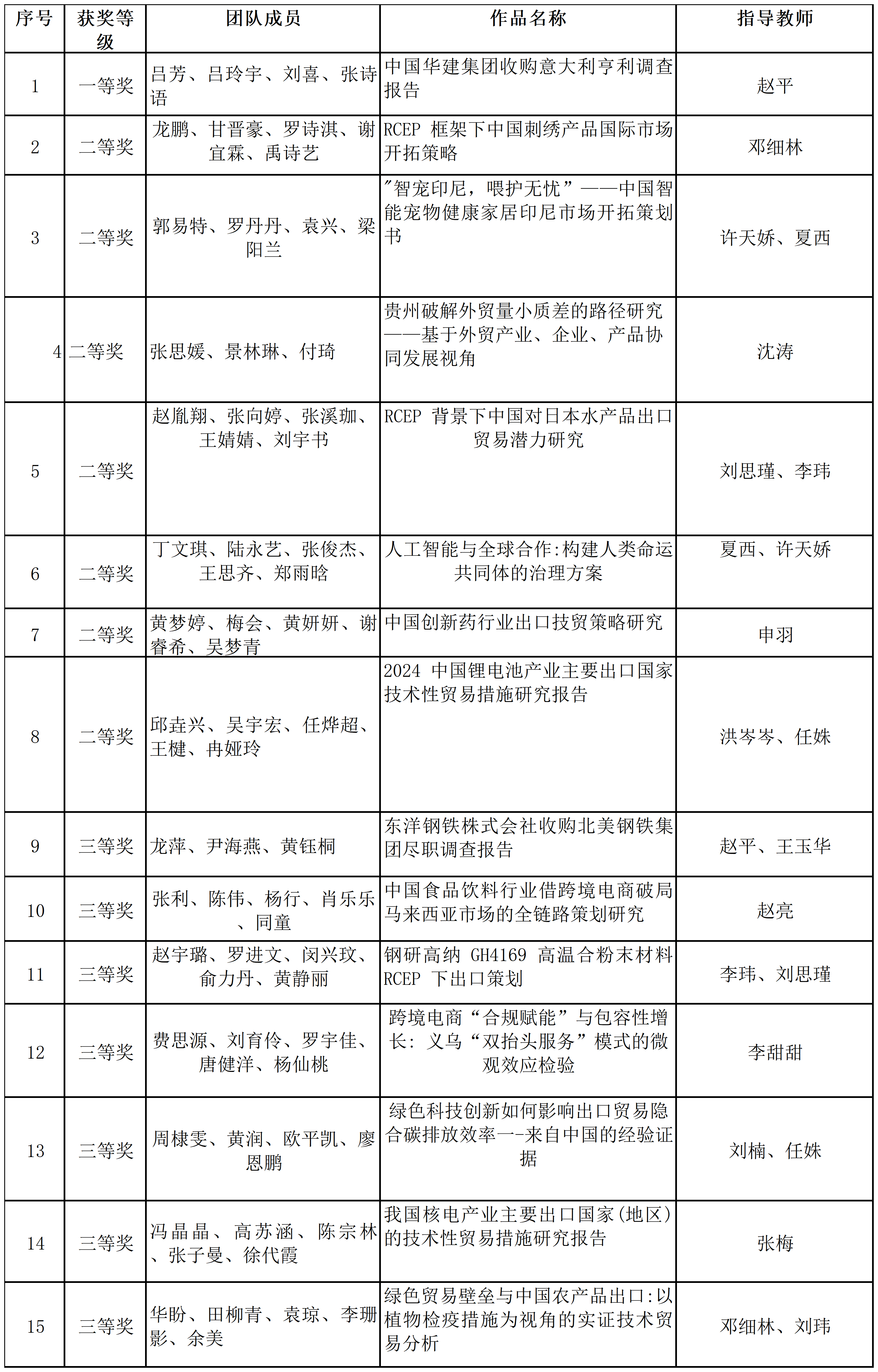 在2025年全国高校商业精英挑战赛国际贸易竞赛中,公司国际经济与贸易系本科员工积极参赛,在16名指导老师的认真指导下,合计68名同学 、15支队伍获得全国奖项,荣获本科生组全国一等奖1项、二等奖7项、三等奖7项。公司获“最佳院校组织奖”。从四个分赛道来看,RCEP国际市场开拓策划赛道有4支队伍获奖,其中获二等奖2项、三等奖2项;国际贸易与商务专题赛道有5支队伍获奖,其中获二等奖3项、三等奖2项;技术性贸易措施评议赛道有4支队伍获奖,其中获二等奖2项、三等奖2项;涉外商事法律赛道有2支队伍获奖,其中获一等奖1项、三等奖1项。
