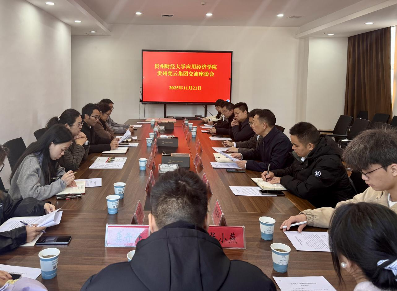 次日,师生一行先后走访贵州贵谷农业有限公司与贵州梵云集团。在贵谷农业,同学们深入生产一线,拆解智能项圈数据传导机理,详细了解大数据在农业生产中的落地应用场景;在梵云集团,同学们参观了贵州梵云集团业务及成果展示长廊,通过聆听讲解,深入了解了贵州梵云集团在相关领域的技术创新、业务布局与发展成就,负责人还专门介绍了企业针对数字经济相关岗位的技能要求、成长路径,为同学们提供一手就业信息。